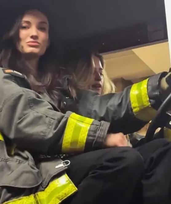 画面显示,这两名女网红穿上消防员的制服,在消防车边大跳热舞,还爬上车坐进车内自拍。她们对着镜头高喊:“你可能不知道,其实可以走进消防站参观、试穿制服!”